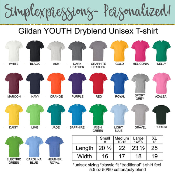 Other shirt styles and colors are available- if you don't see what you would like, please email me and we can find something that works:  melissa@simplexpressionspersonalized.com
