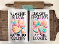 Valentine's Kitchen Towels- All you need is Love and Valentine Cookies Dear Cupid